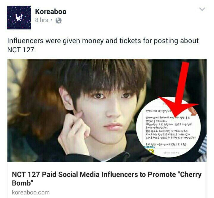 Okay so yall might have already come across this dumbass Koreaboo article saying NCT 127 was paying money to promote Cherry Bomb.